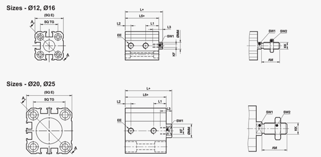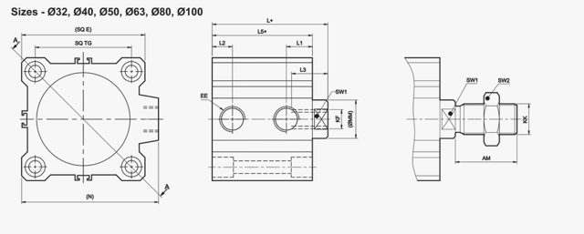 COMPACT CYLINDERS Double Acting ( Ø12 - 100 ) mm MODEL : A02- Compact Cylinder-NON MAGNETIC MODEL: A03 - Compact Cylinder- MAGNETIC Features: Female & Male both piston rod thread available, Compact, lightweight, and space saving design Large clamping force in relation to their size Low friction (Comparing to other series) Elastomer end cushion